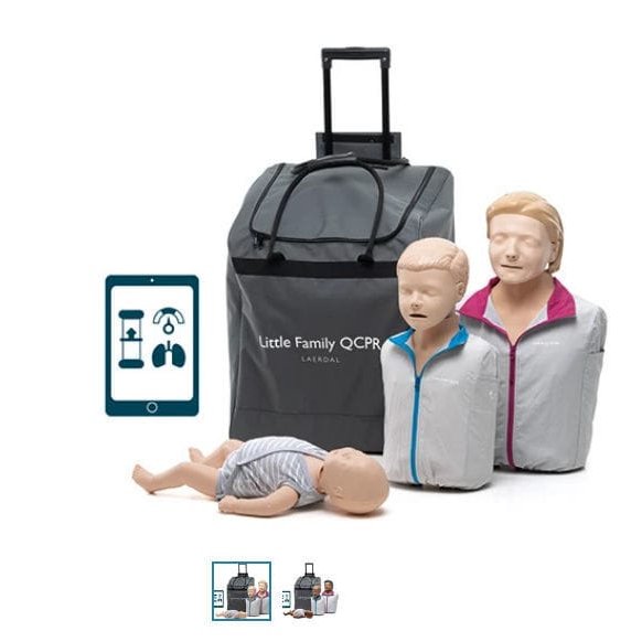 Conjunto de Manequins Laerdal Little Family QCPR é um conveniente pacote de manequins de treino de RCP específicos para a idade com uma mala de transporte com rodas para facilitar o transporte e o armazenamento. Todos os três manequins possuem tecnologia de feedback QCPR para ajudar os instrutores a melhorar a qualidade do treino de RCP. O pequeno QCPR familiar consiste de um manequim adulto, criança e bebe para treino em procedimentos de RCP específicos para cada idade. Construído sobre uma plataforma de produtos comprovada e testada, o Little Family QCPR adiciona nova tecnologia ao mix, o que proporciona um impulso imediato no envolvimento e aquisição de habilidades em seus alunos. Com a RCP de Qualidade nos três manequins, os instrutores podem agora fornecer feedback objetivo a cada aluno – garantindo tanto a eficiência da sala de aula quanto o treino de qualidade. O Little Baby está agora totalmente equipado com a tecnologia QCPR. Treine em RCP infantil e pratique a remoção de corpos estranhos. Conformidade com as diretrizes Ensine todos os parâmetros de RCP de alta qualidade definidos pela AHA, ERC, e outros, conectando cada manequim da Pequena Família à tecnologia objetiva de feedback.